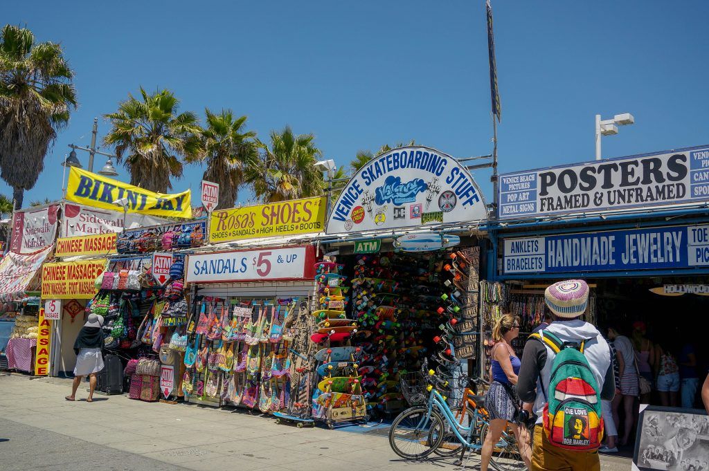 Lo mejor de Venice es recorrer sus 2 km de paseo caminando, en bici, en patines… y disfrutar de su ambiente hippie – bohemio. Hay muchas tiendas de artesanía, de ropa de playa, de camisetas estampadas, …